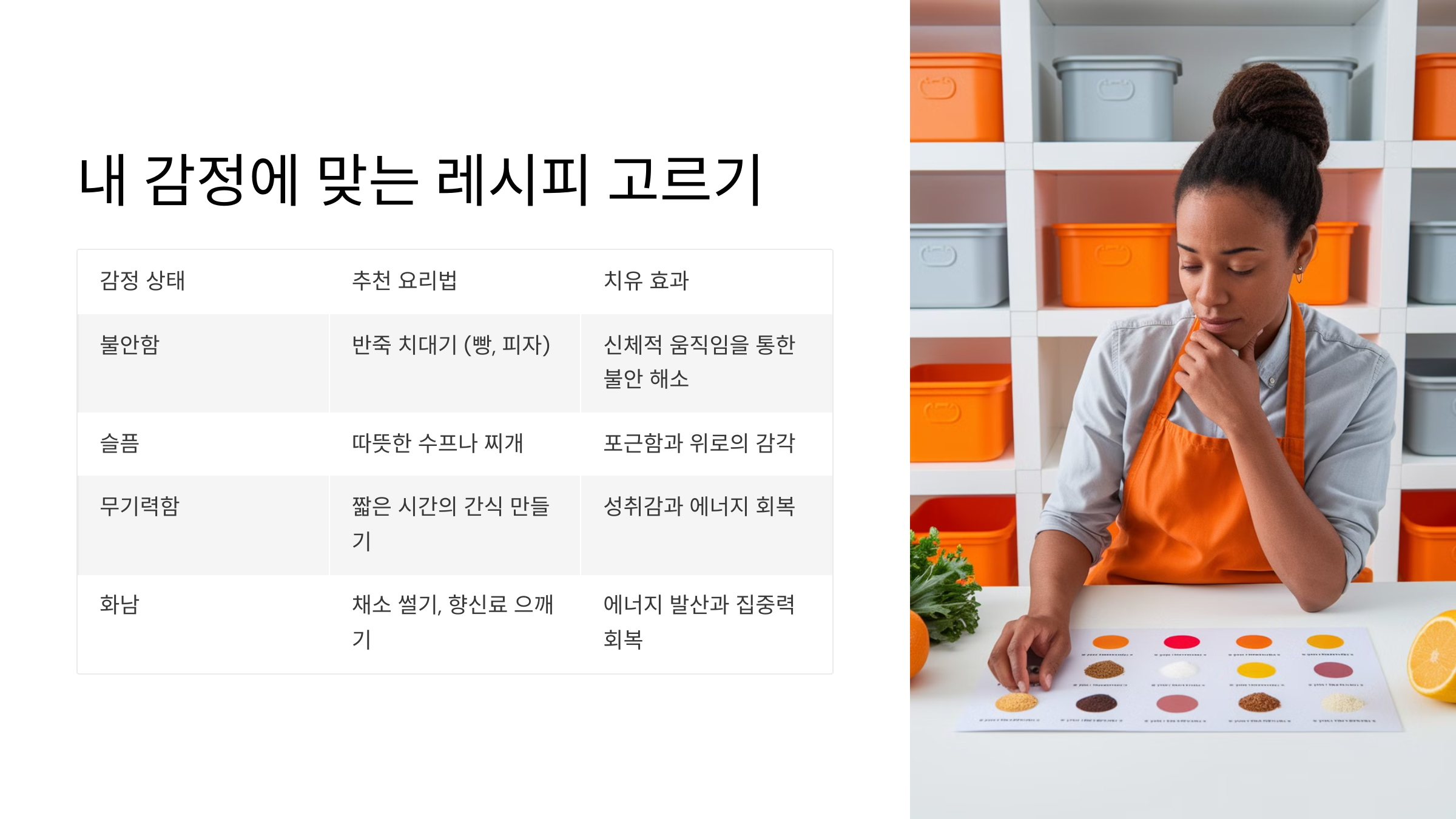 기분에 따라 먹고 싶은 음식이 달라지는 건, 단순한 입맛이 아니라 마음이 나에게 보내는 신호일지도 몰라요. 요리로 위로받고 싶다면, 이 신호에 귀 기울여보세요 🥄