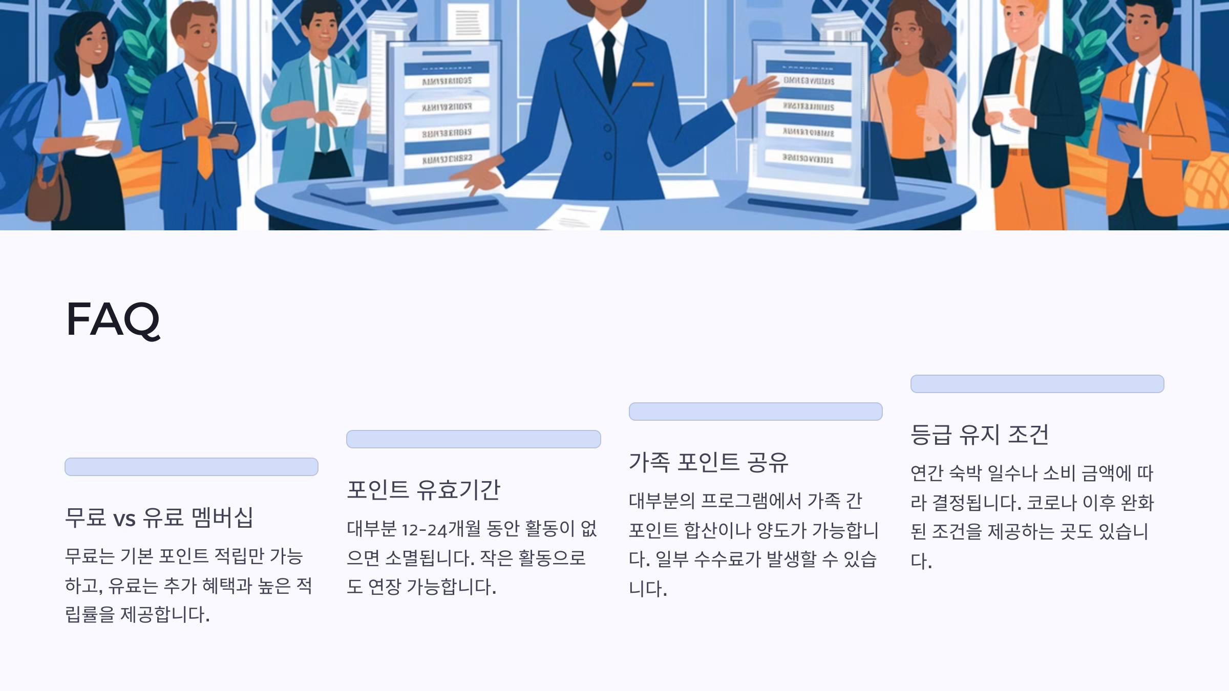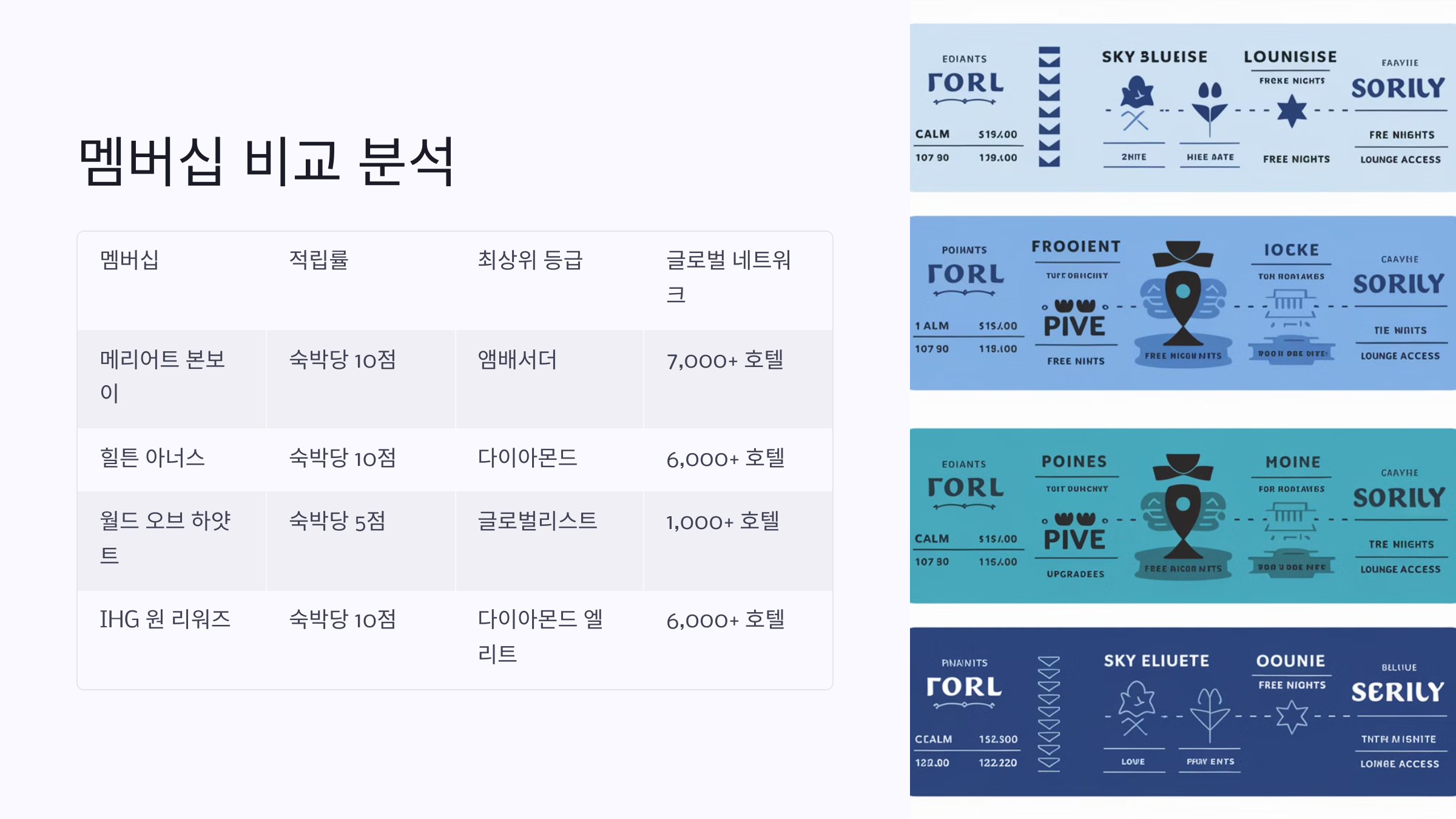 | 멤버십 | 주요 호텔 체인 | 무료 가입 여부 | 포인트 적립 | 주요 혜택 |