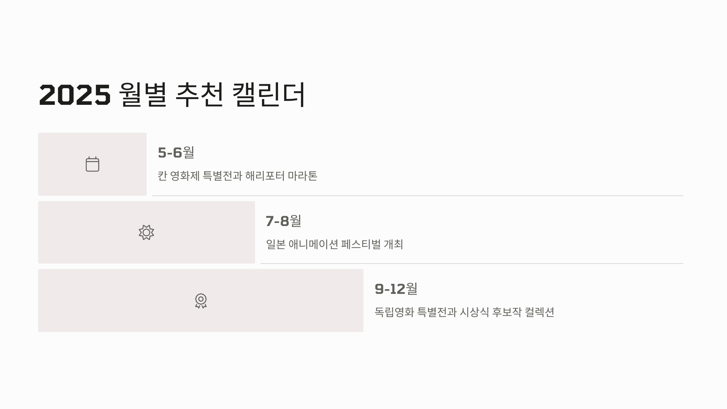 아래는 2025년 주요 월별 추천 영화 캘린더 예시예요. 분위기 따라 골라보는 재미가 있죠 😎