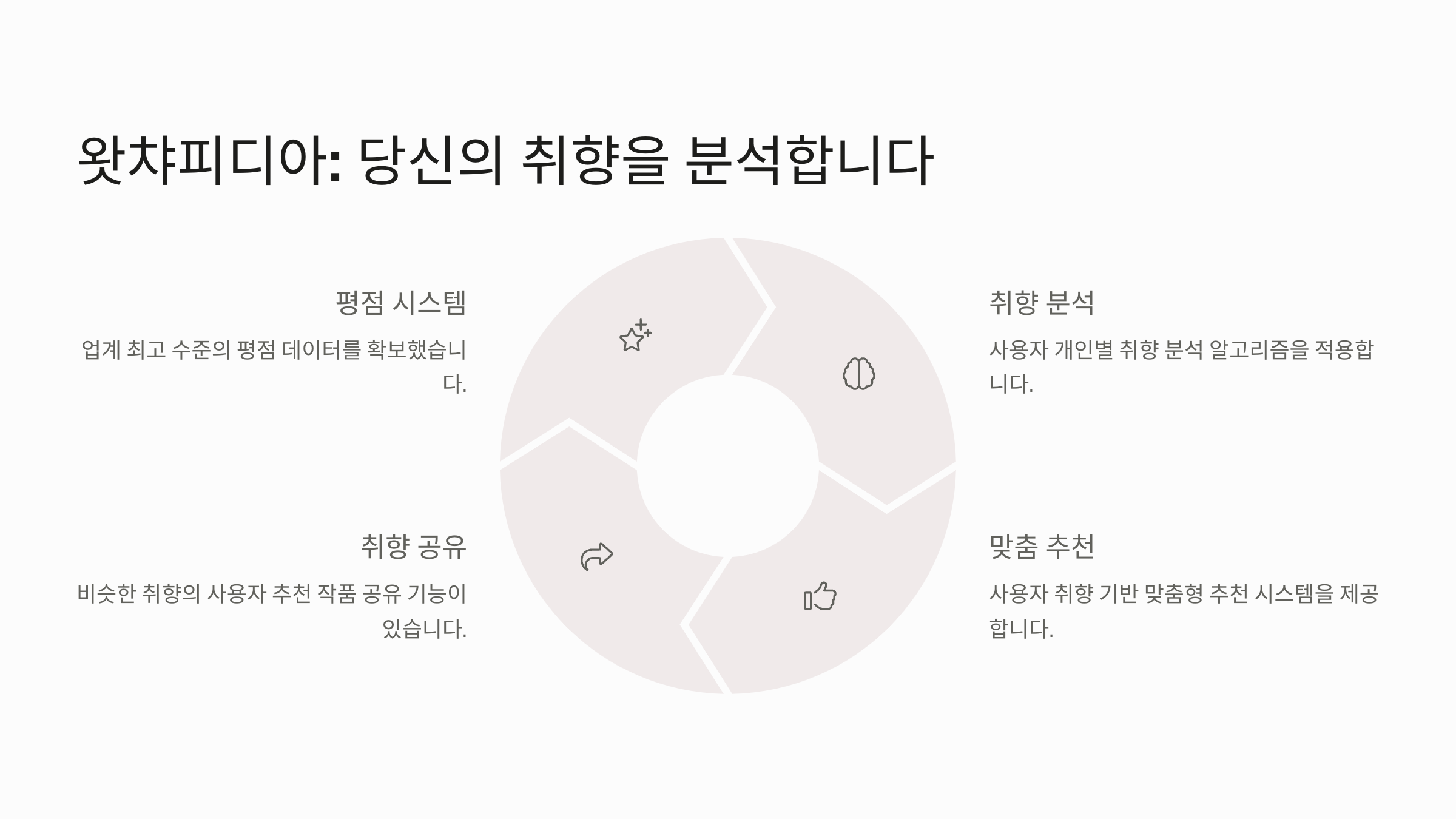 왓챠의 가장 큰 강점은 ‘적중률 높은 알고리즘 추천’과 ‘희귀 콘텐츠 확보’예요. 특히 왓챠 익스클루시브 콘텐츠는 다른 OTT에서는 볼 수 없는 특별한 작품들이 많아서, 컬렉션처럼 소장 가치를 느끼는 분들도 있어요 📚
