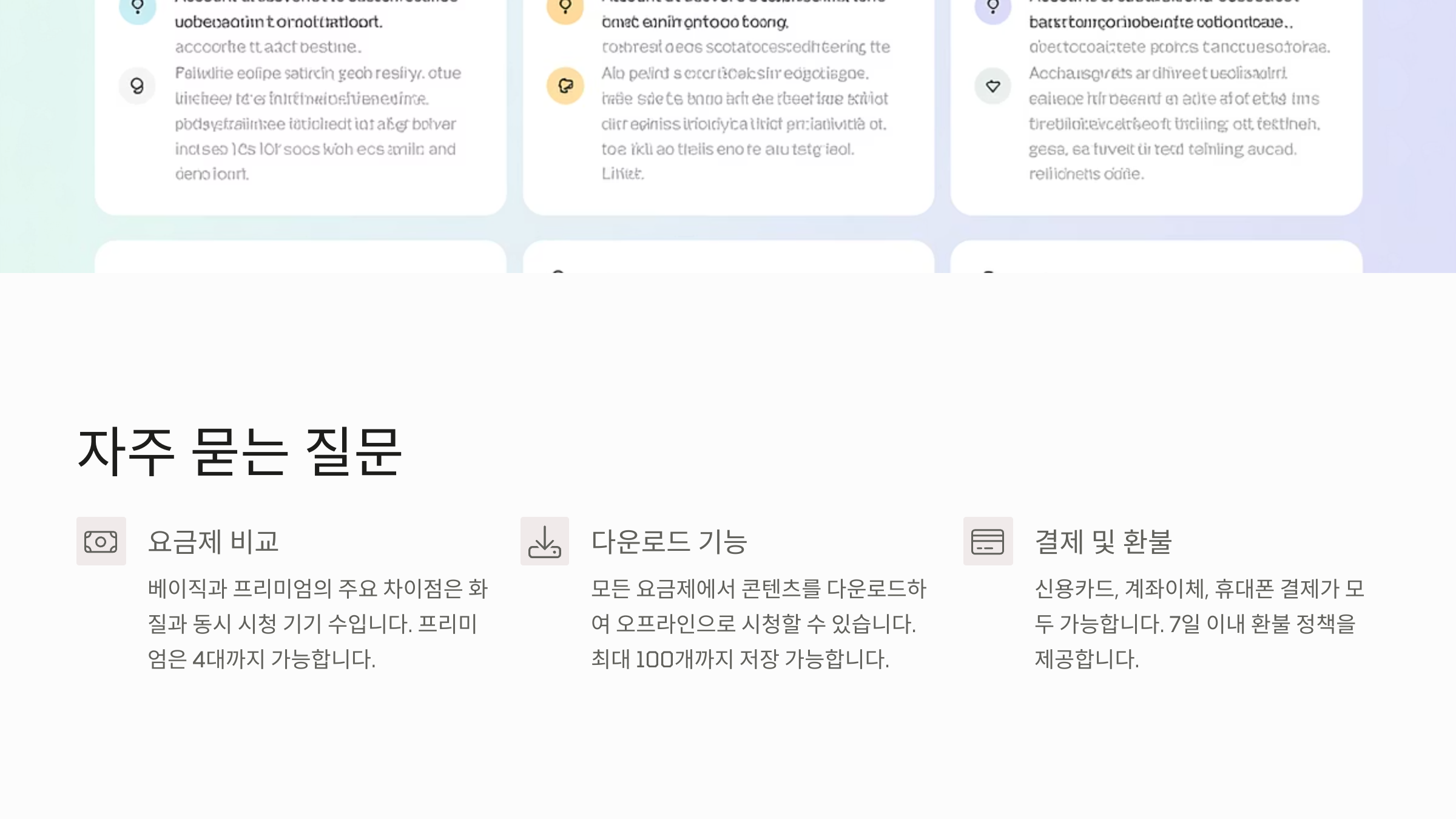 A8. 모바일 앱에서는 다운로드 후 오프라인 시청도 가능해요.