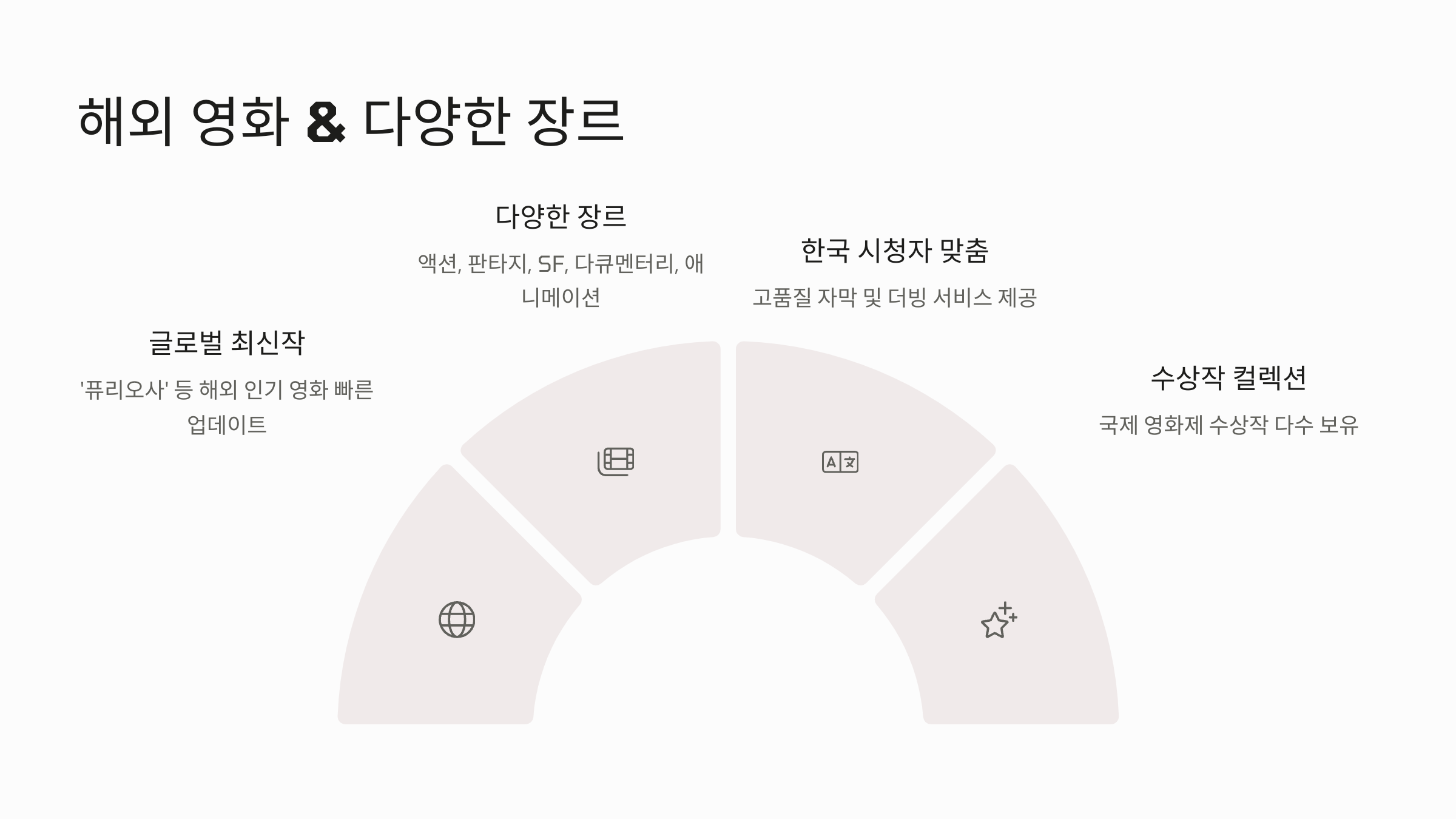 A4. 대부분의 해외 영화에 한글 자막이 제공되고, 일부는 더빙 선택도 가능해요.