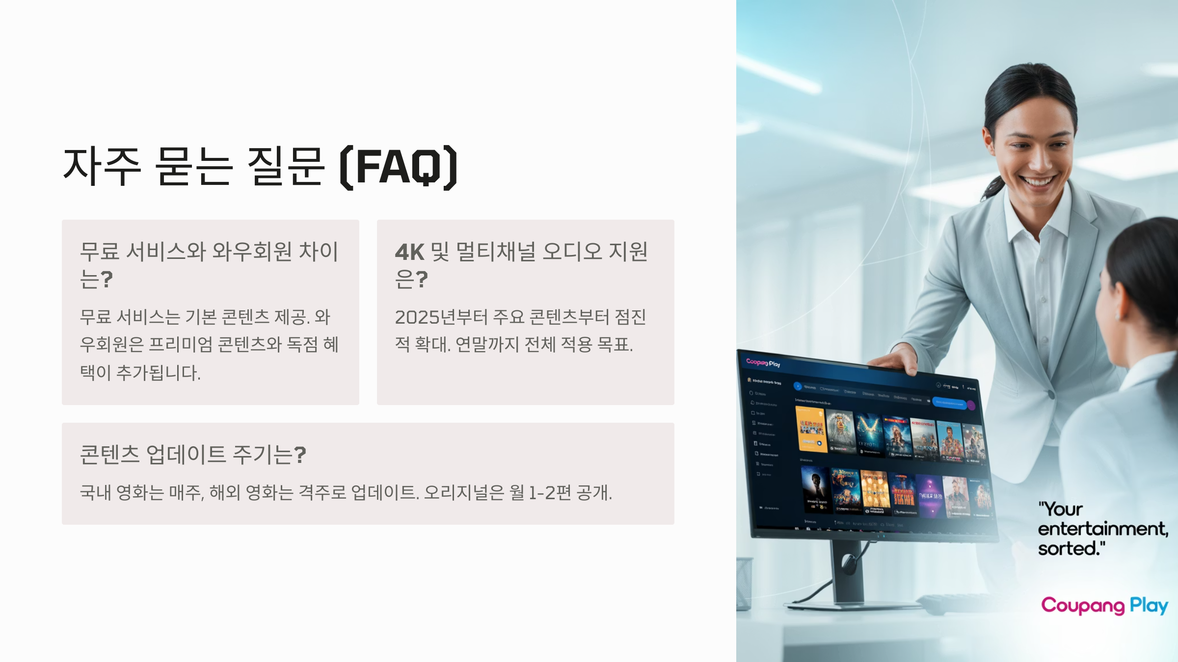 2025년 현재, 쿠팡플레이는 영화, 드라마, 예능, 스포츠 생중계까지 모두 아우르는 종합 콘텐츠 플랫폼으로 성장했어요. 독점 공개작과 빠른 업데이트 덕분에 이용자 만족도도 높아요.